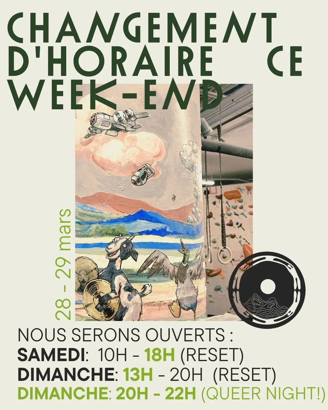 Veuillez noter que nos horaires sont modifiés le week-end du 28 mars.